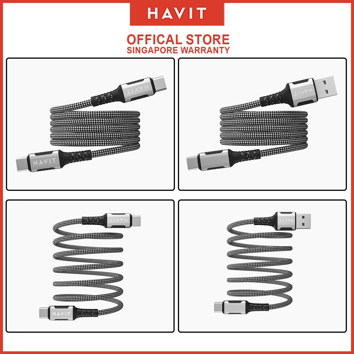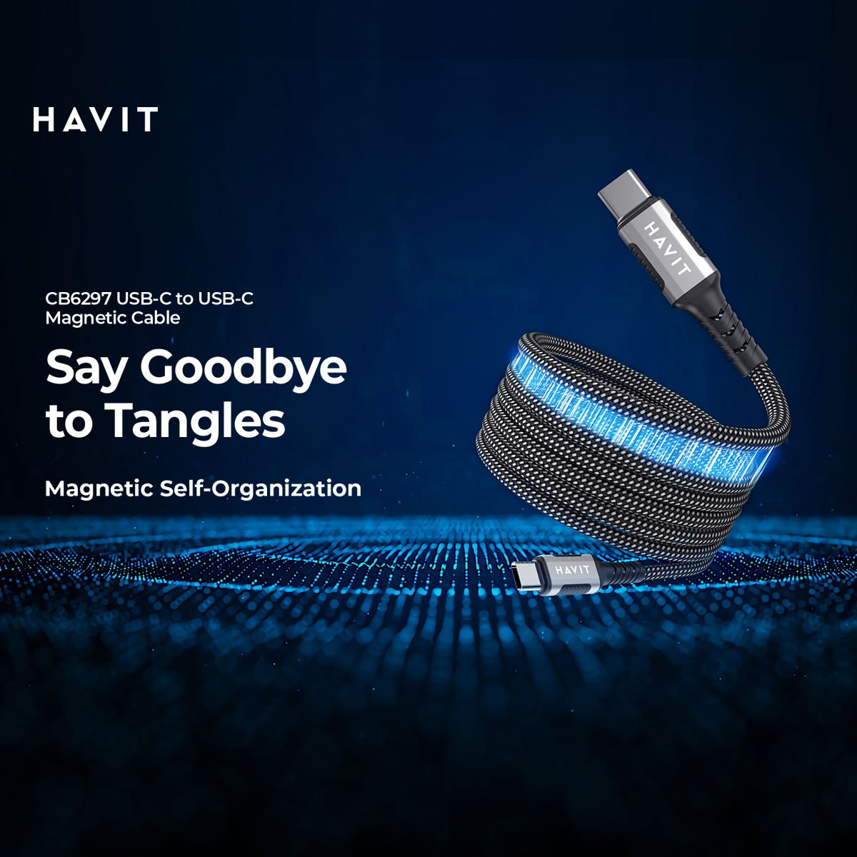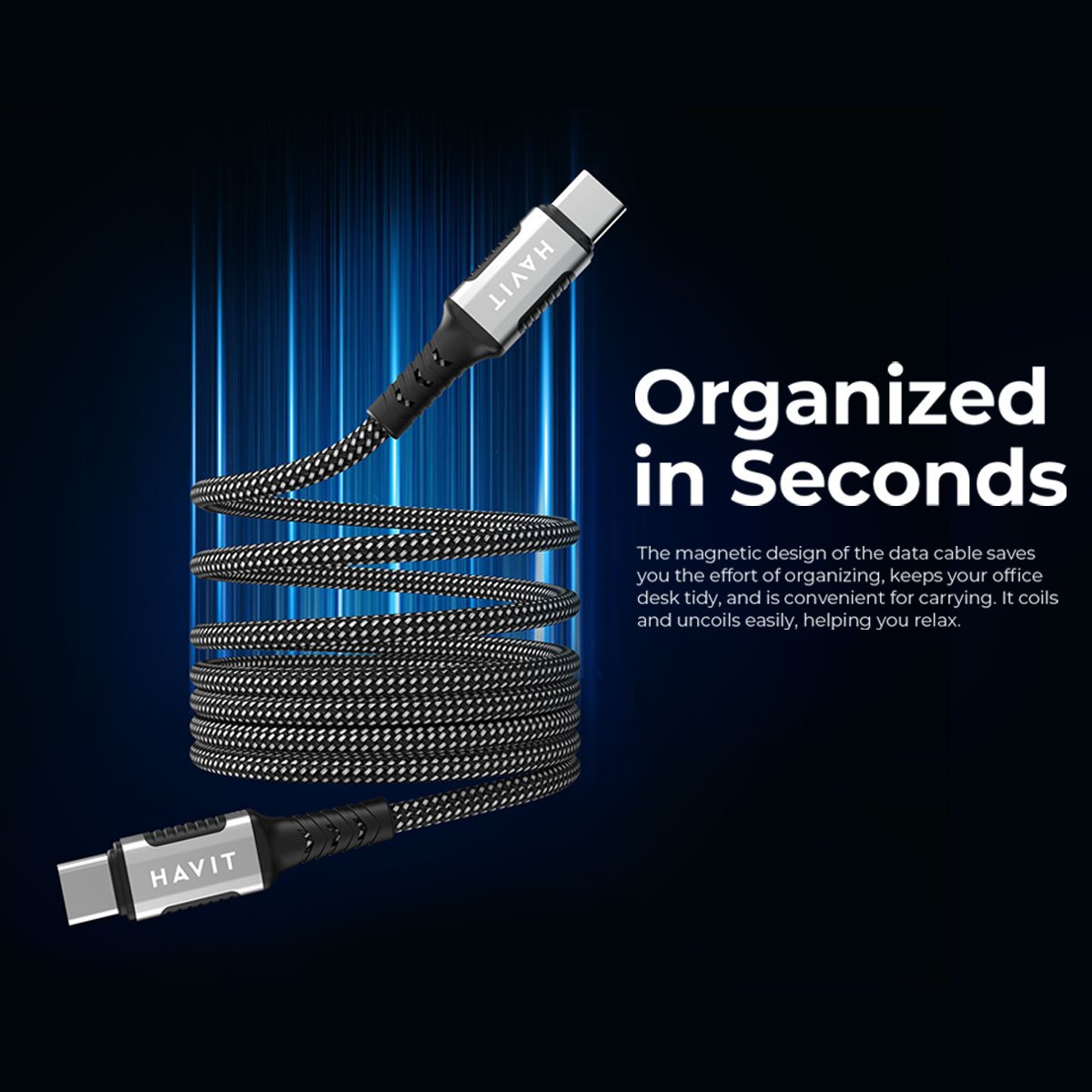 Havit 60W Magnetic Charging Cable | Laptop Fast Charging | USB-C to USB-C | Tangle-Free & Auto-Coil