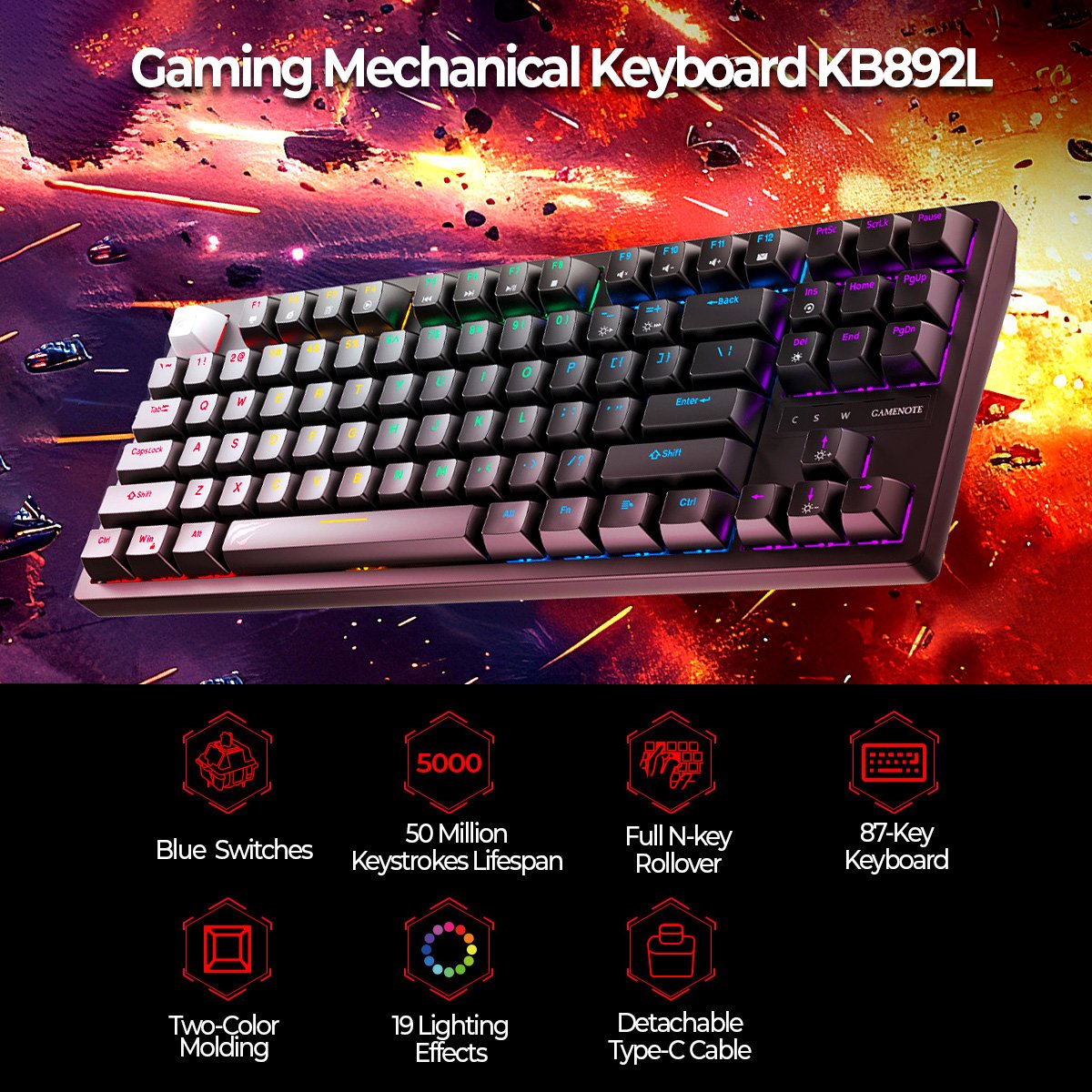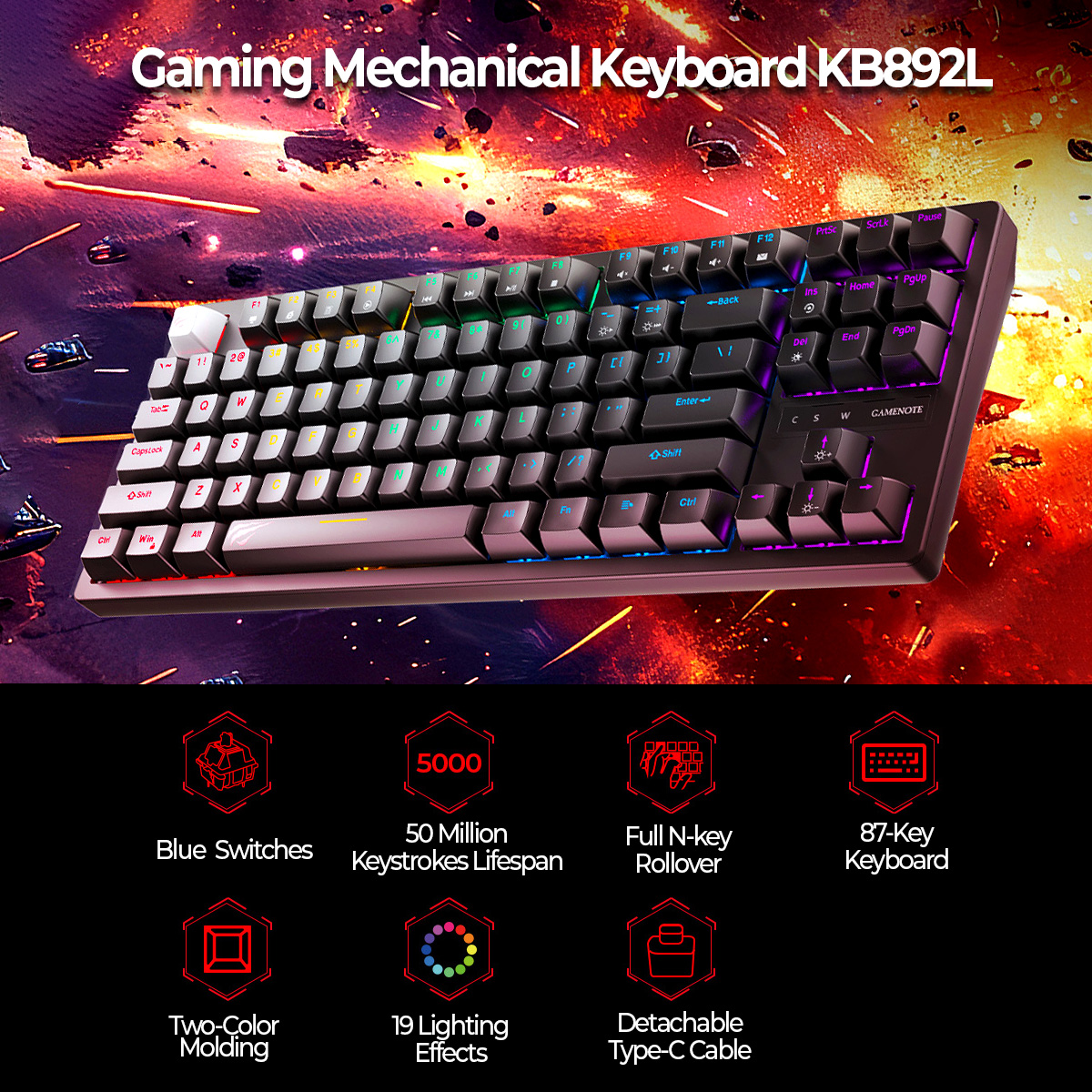 Experience precision and performance with the KB892L 87-key mechanical keyboard.