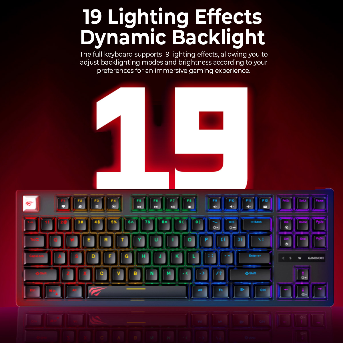Upgrade your setup with the Havit KB892L. This 87-key TKL mechanical keyboard features clicky Blue Switches for ultimate tactile feedback and 19 dynamic RGB lighting effects to match your gaming vibe.