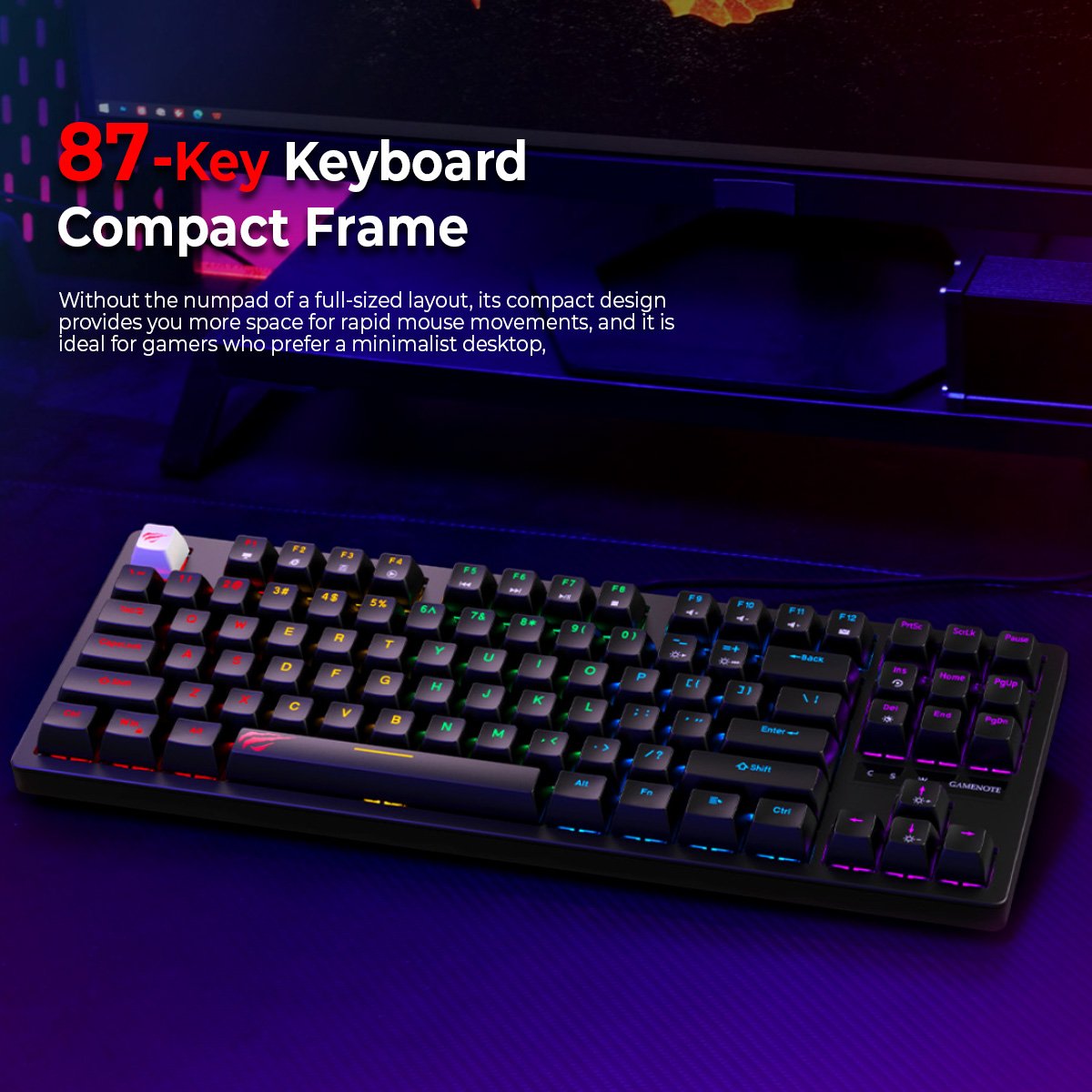 Space-Saving TKL Design: 87-key layout leaves more room for mouse movements.