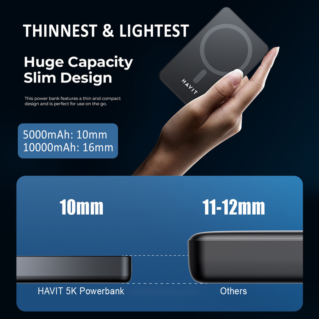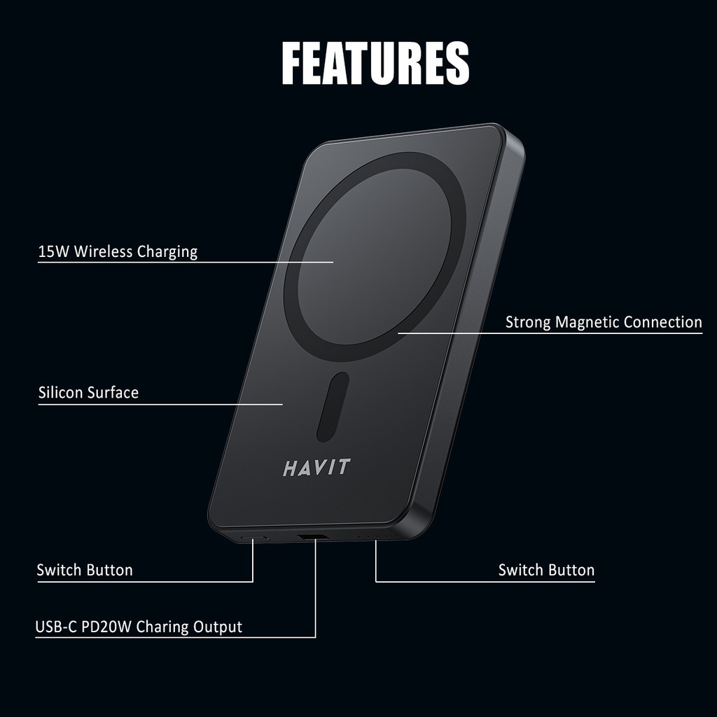 Havit Magsafe Power Bank | Magnetic Wireless | 5000mAh 10000mAh | PD 22.5W 20W 15W Fast Charging