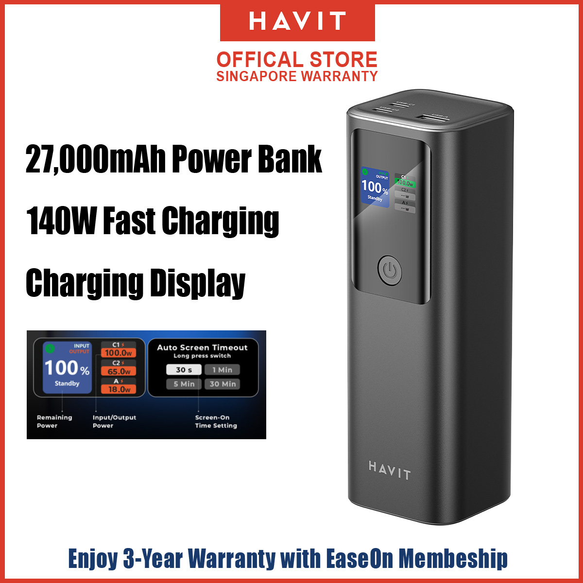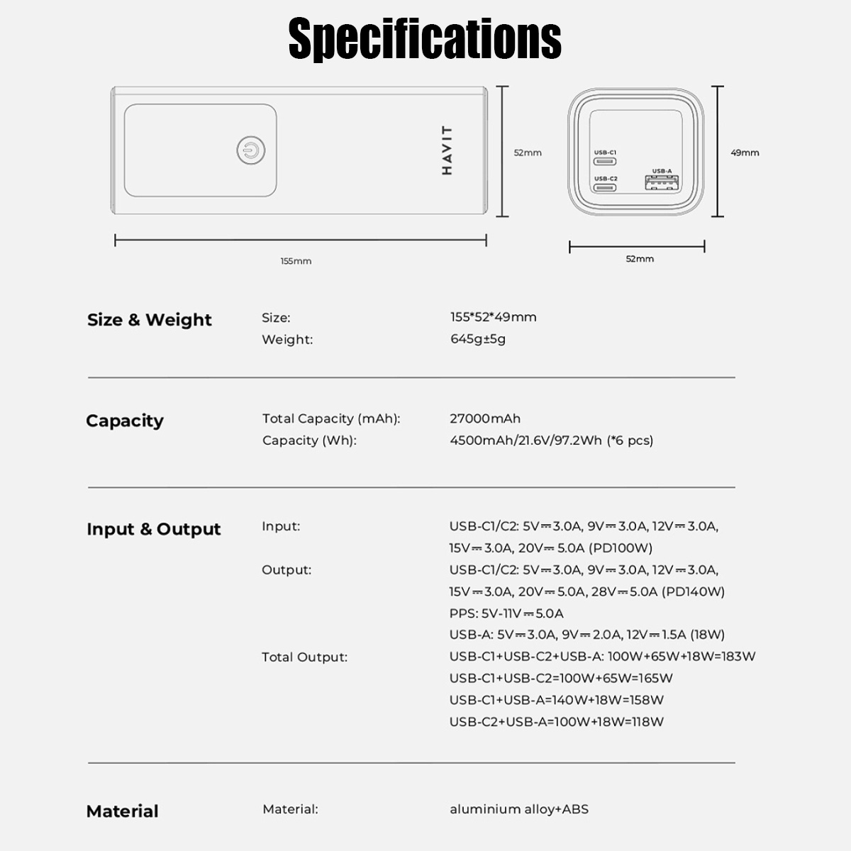 HAVIT PB50 140W Super-Fast Charging Power Bank (27000mAh)
