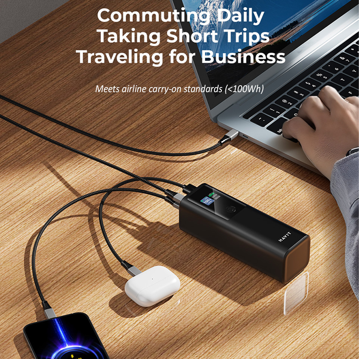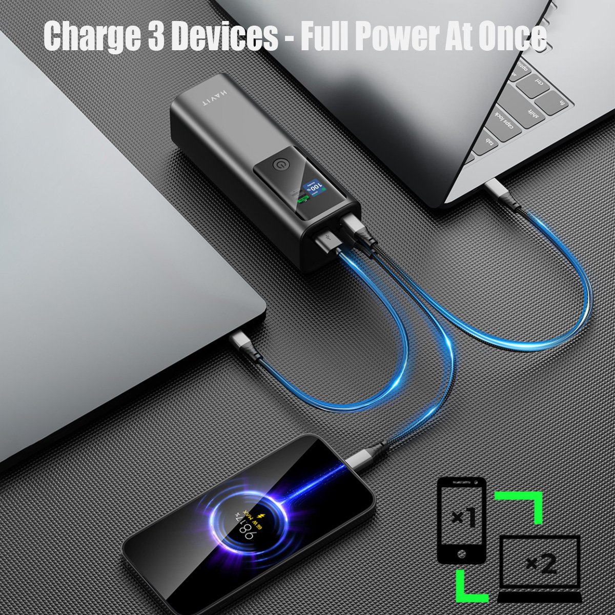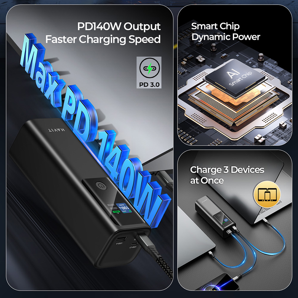 Charge faster than ever with the HAVIT PB50! Featuring 140W fast charging, it powers up laptops, tablets, and phones in minutes.