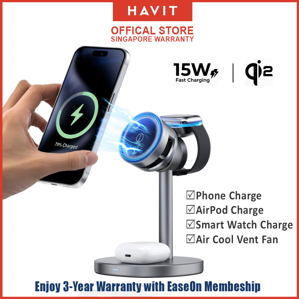 Havit 3-in-1 Wireless Charging Stand Qi2 | 15W Magnetic Charging Station (Phone / Watch / Earbuds)
