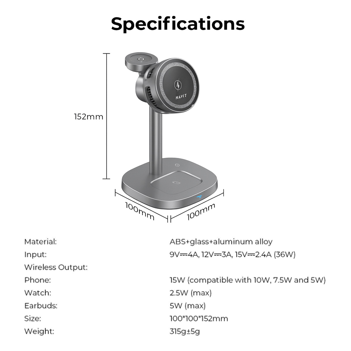 • Phone: 15W (compatible with 10W, 7.5W and 5W)