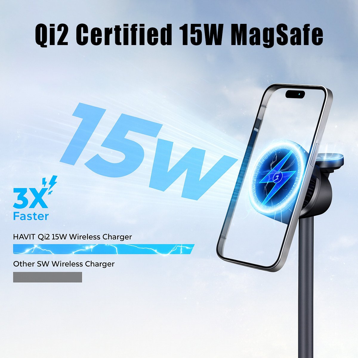 Upgrade to the HAVIT W3110, the ultimate desktop charging station. Built with premium aluminum alloy and an intelligent Active Cooling System, it ensures your iPhone stays cool while delivering maximum 15W MagSafe speeds.